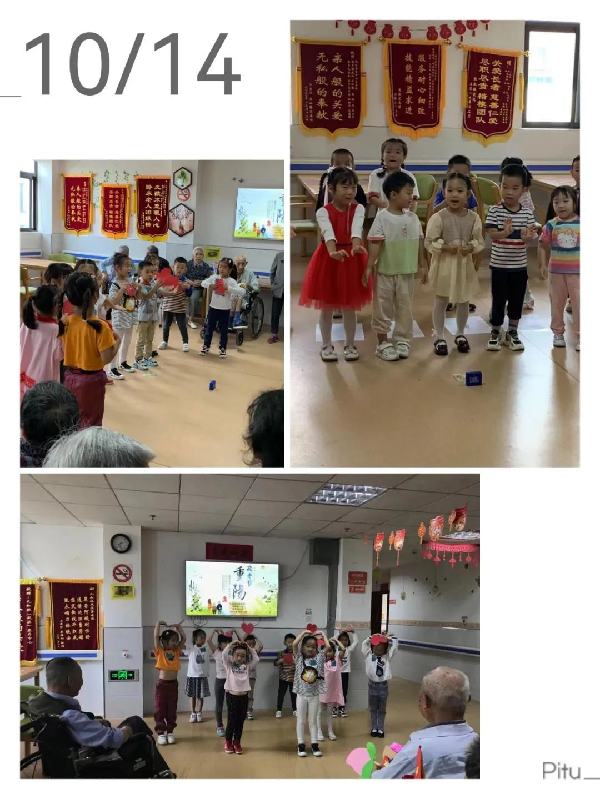 “百善孝为先”敬老孝心打卡活动:上午9点教师携手家长朋友与孩子们一起与爱同行出发去敬老院。来到敬老院后,小朋友们都纷纷热情的和爷爷奶奶们打招呼,并送上了亲手为爷爷奶奶们制作精美的礼物。
